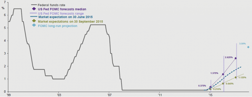 Das große Ereignis wurde zum Non-Event – auch in ihrer Sitzung am 17. September ließ das FOMC, das Federal Open Market Committee der Federal Reserve, die Zinsen in den USA unverändert. Ebenfalls unverändert blieb jedoch auch weiterhin die Erwartungshaltung der US-Notenbank, denn noch immer gehen die 12 Mitglieder dieses obersten Entscheidungsgremiums von einer ersten Zinserhöhung in diesem Jahr aus.