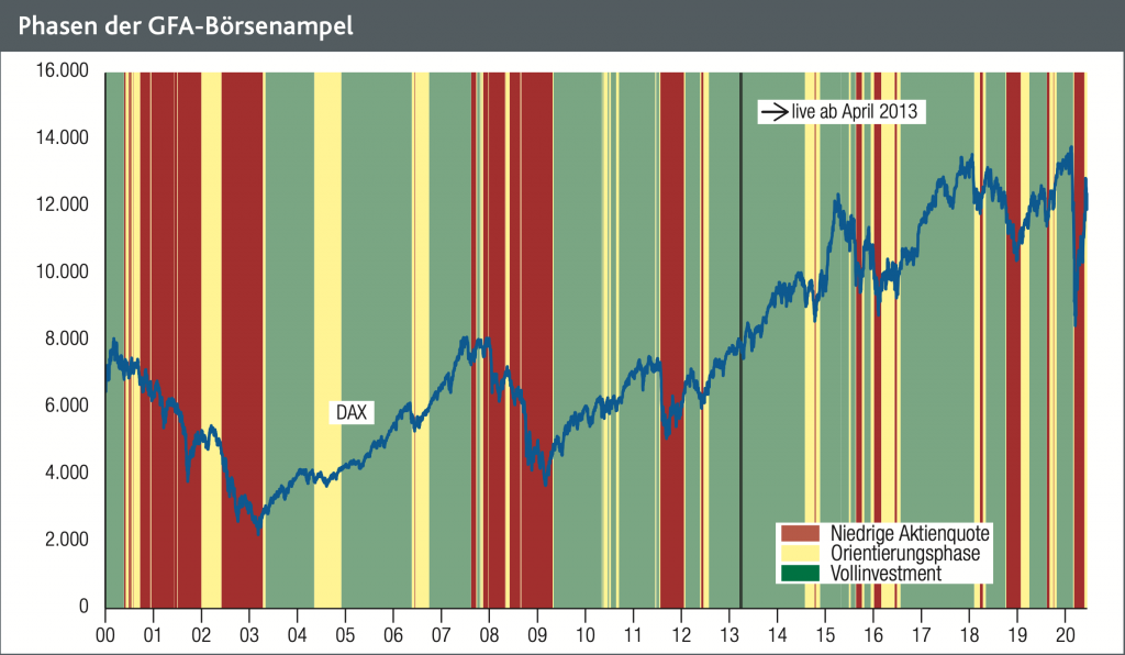 Monatlich veröffentlichen wir die Signale unsere Börsenampel, um aufzuzeigen, ob eine Investition auf dem deutschen Aktienmarkt empfohlen werden kann oder nicht.