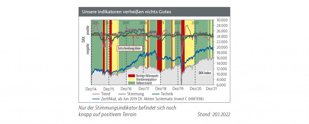 Erneut steht unsere Börsenampel auf GELB und reagiert damit auf die aktuell diffuse Gemengelage. Die Gretchenfrage lautet, ob auf dem Aktienmarkt seit einigen Wochen nur eine Sektor- und Aktienrotation stattfindet oder ob in den nächsten Monaten mit einer größeren Korrektur zu rechnen ist. Im ersten Fall fände „nur“ eine Rotation heraus aus den Technologietiteln und hinein in Aktien der Grundstoffindustrie und Hersteller von Basiskonsumgütern oder andere nichtzyklische Titel statt.