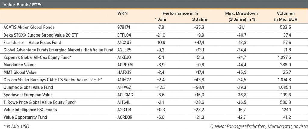 Der vom studierten Psychologen Peter Frech gelenkte Quantex Global Value Fund (WKN: A14VGZ) gehörte auch in Zeiten der Growth-Hausse zu den performancestarken Value-Fonds. Der Investmentansatz ist klar antizyklisch ausgerichtet. Value-Stratege Frech ist gerne in Sektoren unterwegs, die andere meiden wie der Teufel das Weihwasser. So ist beispielsweise der Tabaksektor mit 14,9% vertreten. Darüber ist er stark in Öl- und Gasgesellschaften, Edelmetall- und Industriemetallminen investiert. Unter den hoch gewichteten Titeln finden sich British American Tobacco, Shell und der Minenkonzern Vale. In den vergangenen drei Jahren erzielte der Fonds herausragende 93,4%, deutlich mehr als die Peergroup „Aktien weltweit Flex-Cap“. Aufgrund starker Mittelzuflüsse wollen die Schweizer Value-Strategen in Kürze keine neuen Fondsanteile mehr ausgeben.