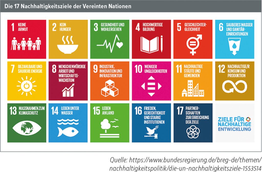 Ein gutes Instrument, um seine Geldanlagen nach dem eigenen moralischen Kompass zu messen, sind die 17 Nachhaltigkeitsziele der Vereinten Nationen, die Sustainable Development Goals (SDGs). Diese reichen von „keine Armut“ bis zu „Partnerschaften zur Erreichung der Ziele“. Nachhaltigkeitsratingagenturen bieten Fondsmanagern Daten, wie einzelne Unternehmen auf die jeweiligen SDGs wirken. So können diese bei der Portfoliozusammenstellung darauf achten, dass sich die Investments positiv und vor allem in keinem Fall negativ auf die Nachhaltigkeitsziele auswirken – und damit ihre Investmentanalysen um einen wichtigen Baustein ergänzen.
