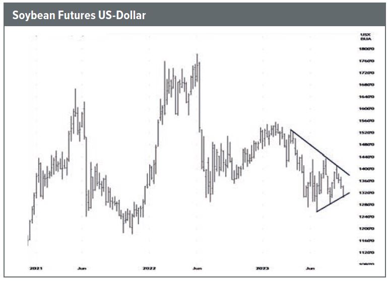 Bei Soya liefert der Preisrutsch auf die bei rund 13 USD/Scheffel befindliche Unterstützung bereits ein leichtes Kaufargument, ein stärkeres bieten jedoch der Verlauf der amerikanischen Erntesaison und die allgemeine Gemengelage des Agrarsektors. So fiel die Sojabohnenernte in den USA im August stärker als erwartet auf ein Elfmonatstief, nachdem heiße und trockene Bedingungen während der wichtigsten Wachstumsphasen für erhebliche Beeinträchtigungen gesorgt hatten. Gleichzeitig dürfte China in der laufenden Saison einen Rekord bei den Sojabohnenimporten aufstellen. In den ersten zehn Monaten dieses Zeitraums stiegen die Einfuhren gegenüber dem Vorjahr um 10% auf 84,3 Mio. Tonnen. Unterstützung könnte auch von anderer Stelle kommen. Nicht nur ist der Preis für Reis – ein Grundnahrungsmittel für etwa die Hälfte der Weltbevölkerung – jüngst auf den höchsten Stand seit 15 Jahren geschnellt und vor allem aufgrund indischer Exportbeschränkungen bislang nur geringfügig zurückgefallen: Eine nun in Rede stehende Preisobergrenze für dieses wichtige Getreide könnte den Markt weiter destabilisieren und damit buchstäblich die Saat für eine potenzielle Nahrungsmittelkrise ausbringen. Zudem dürfte der kürzlich verhängte Ausfuhrstopp chinesischer Düngemittel auch zukünftige Ernten vermindern und auch die oben angesprochenen hohen Energiepreise nicht ohne Wirkung bleiben.