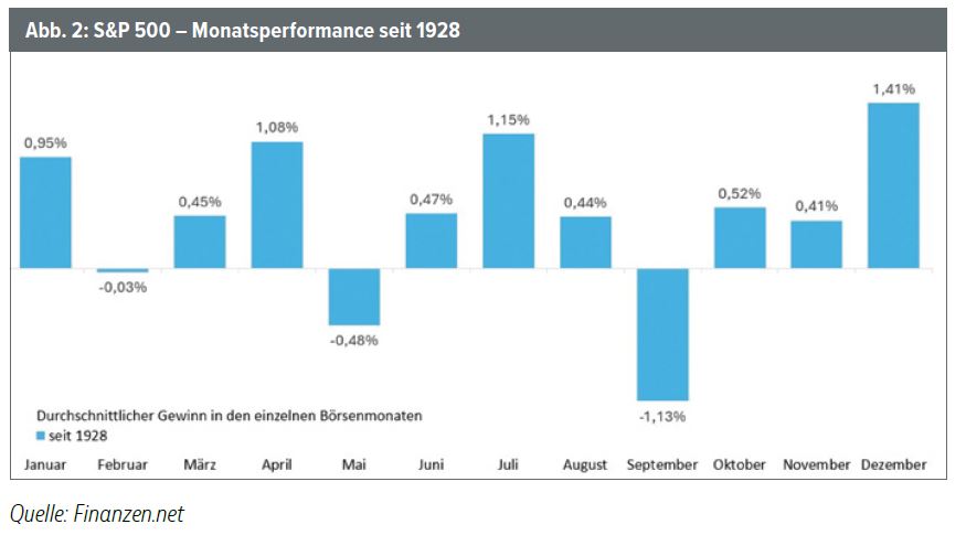 Ein weiterer Umstand beeinflusst die Statistik sogar noch mehr – nämlich die Tatsache, dass viele der großen Kurseinbrüche genau in diesen Zeitraum fielen. Zum Beispiel begannen die Börsencrashs von 1987, 1998, 2001 und 2008 allesamt im August oder September. Rechnet man diese Extremereignisse heraus, ist langfristig fast gar kein Ergebnisunterschied zur Buy-and-Hold-Strategie zu beobachten. Lediglich in einzelnen Jahren wäre sie also aufgrund der Vermeidung von Crashs zu rechtfertigen. Insofern sollte dieser Teil der Saisonalität an den Aktienmärkten nicht überbewertet werden, wobei allerdings die Frage offenbleibt, ob bestimmte Monate für die zwar seltenen, aber materiellen Crashereignisse prädestiniert sind. Für eine statistisch signifikante Aussage ist die Datenbasis der wenigen Ereignisse allerdings nicht ausreichend.