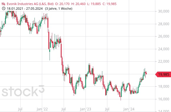 Aus Dividendensicht fällt als erstes die üppige Rendite auf: mit rund 5,8% bei einem aktuellen Kurs von 20,20 EUR belegen die Essener Platz sieben unter den deutschen Dividendenzahlern. Dies ist vor allem dem nach wie vor recht niedrigen Aktienkurs geschuldet. Vor knapp drei Jahren notierte das Papier noch rund 50% höher. Evonik ist sicher kein klassischer Wachstumstitel, von dem jedes Jahr neue Auszahlungssteigerungen zu erwarten wären. Allerdings bleibt positiv zu erwähnen, dass auch in schwierigen Zeiten, die Dividende zumindest nicht gekürzt wurde und sich die Aktionäre daher auf eine gewisse Kontinuität verlassen können. Wer in dem mittelfristigen Chartbild eine Art Bodenbildung samt aktueller Erholung erkennt und am 7. Juni in den Genuss der Jahresausschüttung kommen möchte, sollte sich die Aktie bis zum Ex-Datum 5. Juni ins Depot holen.