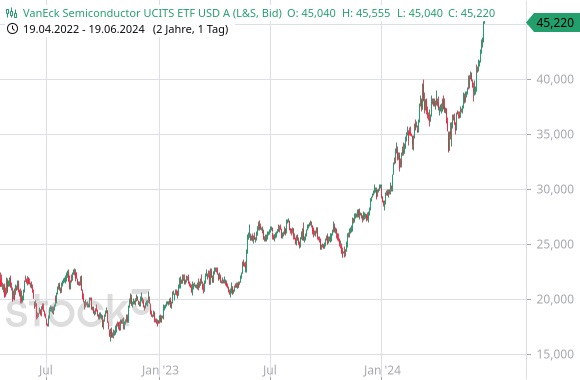 Die größten Positionen im ETF: Nvidia, TSMC, Broadcom, ASML, AMD, Qualcomm, Texas Instruments, AMD, Intel. Es sind die üblichen Verdächtigen aus den USA, Taiwan und den Niederlanden. Aber wie gesagt, nicht das Aufspüren unentdeckter Anlageperlen ist die vornehmste Pflicht substanzer Investoren, sondern das Erzielen von Börsengewinnen. Derzeit werden die dort gemacht, wo fortschrittlichste Technologien für die Konsumenten der Welt entwickelt und produziert werden.
