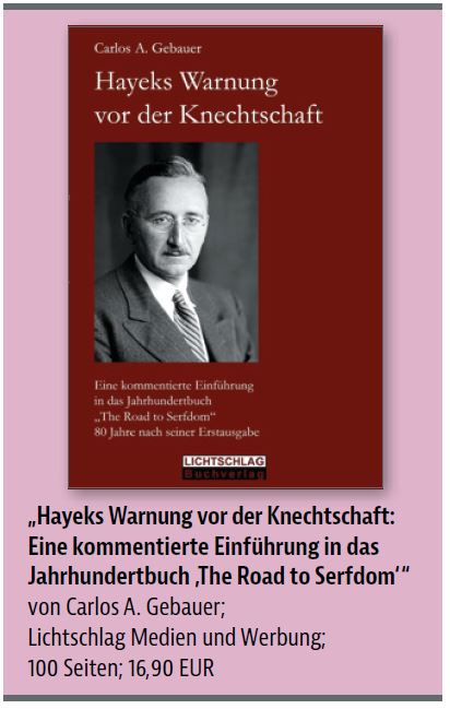 Gebauer: Mir ist aufgefallen, dass dieses Buch, mit offiziell über 2 Mio. Kopien ein Weltbestseller, im öffentlichen Dialog nicht den Raum hat, den es richtigerweise haben sollte. Wenn es um zu viel administrative Gewalt im Alltagsleben der Bürger und Unternehmen geht, reden wir immer von George Orwell und von „1984“. Aber die wenigsten wissen, dass „The Road to Serfdom“ von Friedrich August von Hayek aus dem Jahr 1944 der Vorläufer dieses Buches war. Mit seinem spezifischen Wissen als Politikwissenschaftler, Ökonom und Jurist konnte Hayek schon sehr genau beschreiben, was nicht nur das Problem der sowjetischen, sondern insbesondere auch der nationalsozialistischen Wirtschaftspolitik war – eine völlige Übergriffigkeit der Politik in das Leben der Bürger hinein. Hayek hatte selbst in Großbritannien eine Tendenz gespürt, den Staat in eine zu mächtige Position zu versetzen. Orwell war einer der ersten Rezensenten des Buchs. Er hatte erkannt, dass es sinnvoll war, die Gedanken Hayeks weiter zu popularisieren – in Romanform. Aber auch Hayeks Werk hat 80 Jahre nach der Ersterscheinung eine erneute Popularisierung absolut verdient.