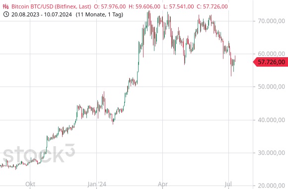 Wer sich gänzlich außerhalb des Aktienbereichs bewegen will, wurde zuletzt immer öfter bei Kryptowährungen, namentlich dem Bitcoin fündig. Dem fulminanten Aufschwung der letzten Monate folgte nun eine kleine Katerstimmung. Seit vergangenem Freitag zeigen sich allerdings wieder erste Stabilisierungsversuche. Der Bitcoin fiel im Tagesverlauf zunächst bis auf 53.500 USD, konnte sich dann aber auf ca. 56.600 USD erholen. Seitdem verläuft der Markt seitwärts. Obwohl weiter mit sogenannten Verleiderverkäufen jener Anleger gerechnet werden muss, die den Bitcoin zu Höchstkursen um 70.000 USD erworben haben, sollte auch die starke Pro-Bitcoin-Lobby nicht unterschätzt werden. In den Anfangstagen war Bitcoin ein Exot, den kaum jemand auf dem Radar hatte, heute ist er in der etablierten Finanz- und Bankenwelt angekommen und wird von einigen Adressen kräftig promoted. So gehört unser Musterdepotwert MicroStrategy (WKN: 722713) unter dessen Chef Michael J. Saylor zu denen, welche die Werbetrommel mit am lautesten rühren.