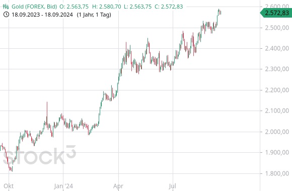 Die Europäische Zentralbank (EZB), die Zentralbanken Dänemarks und Schwedens haben ihre Zinsen gesenkt, ebenso die Bank of England, die Schweizerische Nationalbank und die Bank of Canada. Die Fed wird ebenfalls einschwenken (s.o.). Investoren dürfen mit fallenden Zinsen für die nächsten Monate, wenn nicht Jahre rechnen. Das billiger werdende Geld treibt den Kurs des Goldes hoch. Wer partizipieren will, greift zu klassischen Anlagemünzen wie Krügerrand oder Maple Leaf, tagesaktueller Stückpreis 2.292 EUR. Als Alternative bieten sich Goldfonds an wie Xetra Gold (WKN: A0S9GB) oder Euwax Gold (WKN: EWG0LD).