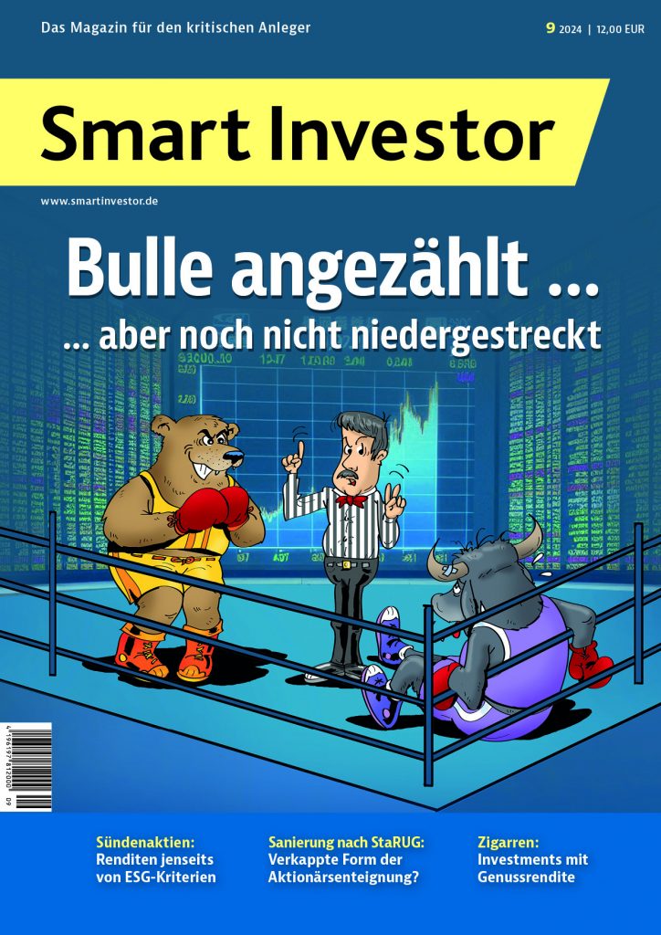 In der Rubrik Musterdepots & wikifolio finden Sie diesmal kurze Updates zu unserem Aktien- und Fonds-Musterdepot sowie zu unserem wikifolio „Substanz Investor – Momentum“. Die große Monatsübersicht für August 2024 inklusive Käufen/Verkäufen ist in der Ausgabe vom 28. August zugänglich. Im Musterdepotbereich können Sie sich durch einfaches Blättern einen schnellen Überblick über die Transaktionen der letzten Wochen verschaffen. Um diesen Bereich lesen zu können, müssen Sie Abonnent des Substanz Investor Magazins sein und sich auf der Smart-Investor-Website einloggen. Sollten Sie Ihr Passwort vergessen haben, fordern Sie bitte ein neues bei abo@substanzinvestor.de an.