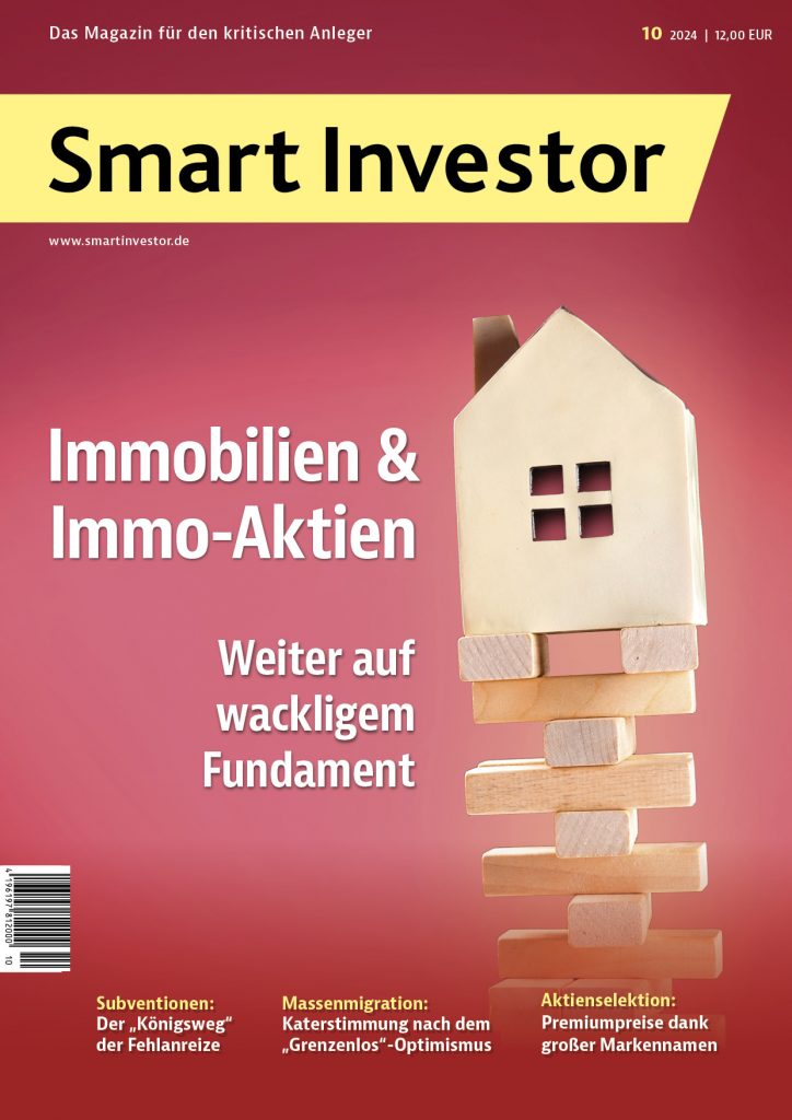 In der Rubrik Musterdepots & wikifolio finden Sie unsere Updates zu den Musterdepots sowie zu unserem wikifolio „Substanz Investor – Momentum“. Die große Monatsübersicht für September 2024 inklusive der erfolgten Transaktion war Bestandteil der Ausgabe 40/2024. Die Beschreibung der Entwicklung ist im Substanz Investor 10/2024 nachzulesen. Im Musterdepotbereich können Sie sich durch einfaches Blättern einen schnellen Überblick über die Transaktionen der letzten Wochen verschaffen. Um diesen Bereich lesen zu können, müssen Sie Abonnent des Substanz Investor Magazins sein und sich auf der Smart-Investor-Website einloggen. Sollten Sie Ihr Passwort vergessen haben, fordern Sie bitte ein neues bei abo@substanzinvestor.de an.