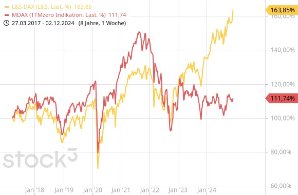 Die typisch deutschen Unternehmen, etwa die des Maschinenbaus, finden sich bekanntlich zahlreich im MDAX. Um diesen Index, der in der Vergangenheit den DAX über Jahre hinweg locker schlagen konnte, ist es, trotz allgemeiner Börseneuphorie, zuletzt still geworden. Zu Recht, denn der MDAX hat seit dem Jahresultimo 2023 ein Minus von 2,5% hingelegt, wohlgemerkt als Performanceindex, in dem die Dividenden bereits enthalten sind.