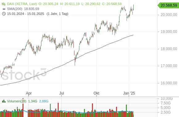 Im Verlauf der Berichtswoche hat sich für den DAX per Saldo nicht viel verändert. Nach einem ersten Anlauf auf das bisherige Allzeithoch gab es zunächst einen Rücksetzer in den Bereich von knapp über 20.000 Punkten. Damit schien sich das Thema eines eher enttäuschenden Jahresauftakts zunächst zu bestätigen. Am heutigen Mittwoch konnten die deutschen Standardtitel dann doch noch von positiven US-Inflationsdaten und einem Kurssprung in den USA profitieren. Der DAX schießt am frühen Nachmittag förmlich auf ein neues Allzeithoch, das er zum Redaktionsschluss dieser Ausgabe auch gehalten hat.