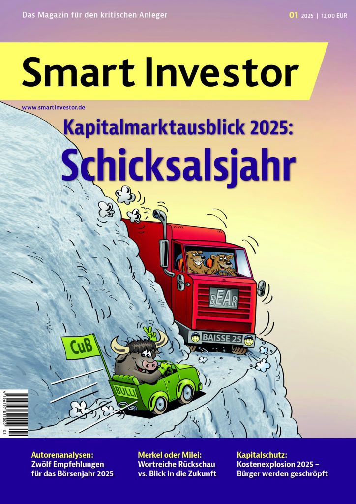 In der Rubrik Musterdepots & wikifolio finden Sie diesmal ein Kurzupdate zu den Musterdepots sowie zu unserem wikifolio „Substanz Investor – Momentum“. Die große Monatsübersicht zum Aktien-Musterdepot für Dezember 2024 inklusive der erfolgten Transaktion finden Sie hier. Im Musterdepotbereich können Sie sich durch einfaches Blättern einen schnellen Überblick über die Transaktionen der letzten Wochen verschaffen. Um diesen Bereich lesen zu können, müssen Sie Abonnent des Substanz Investor Magazins sein und sich auf der Smart-Investor-Website einloggen. Sollten Sie Ihr Passwort vergessen haben, fordern Sie bitte ein neues bei abo@substanzinvestor.de an.