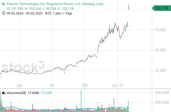 Als echter Knaller erwiesen sich die Zahlen von Palantir (WKN: A2QA4J). Das Unternehmen ist der führende Spezialist im Bereich Datenanalyse und KI-Lösungen in diesem Bereich. Das Umsatzwachstum von +36% übertraf die Einschätzungen der Analysten ebenso wie die Wachstumsprognose von +31% für 2025. Verlockend sind weitere Regierungsaufträge in den Bereichen Sicherheit und Militär. Zudem winkt nach dem Wechsel an die NASDAQ die Aufnahme in den führenden Technologieindex NASDAQ 100. An der Börse feierte man die guten Aussichten mit einem Kurssprung um mehr als +23%.