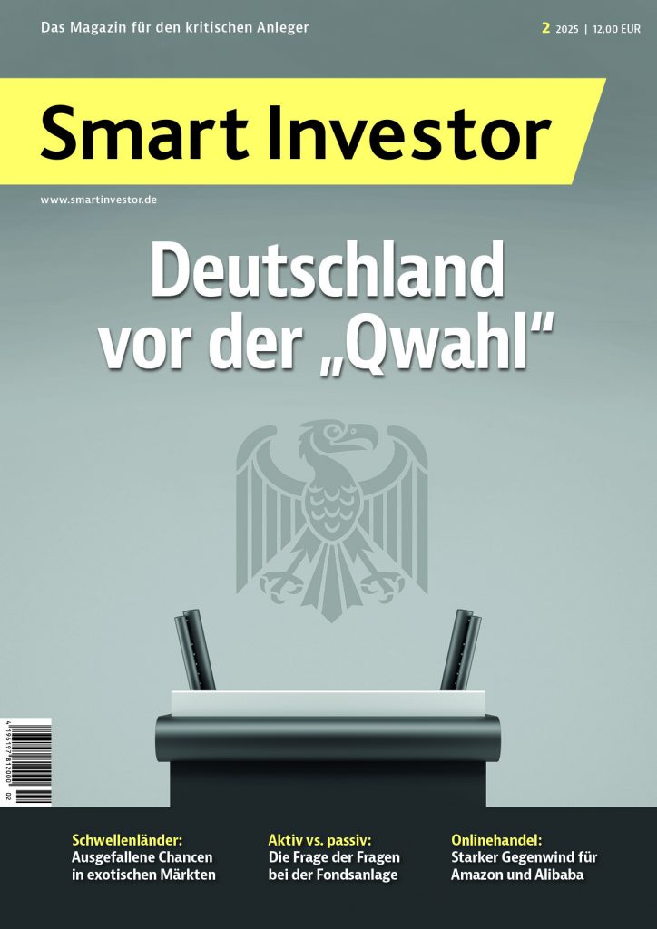 In der Rubrik Musterdepots & wikifolio finden Sie diesmal einen neuen Kauf in unserem Aktien-Musterdepot, sowie einen Kurzbericht zu unserem wikifolio „Substanz Investor – Momentum“. Die große Monatsübersicht für Januar ist für Sie in Ausgabe 5/2025 verfügbar.. Im Musterdepotbereich können Sie sich durch einfaches Blättern einen schnellen Überblick über die Transaktionen der letzten Wochen verschaffen. Um diesen Bereich lesen zu können, müssen Sie Abonnent des Substanz Investor Magazins sein und sich auf der Smart-Investor-Website einloggen. Sollten Sie Ihr Passwort vergessen haben, fordern Sie bitte ein neues bei abo@substanzinvestor.de an.