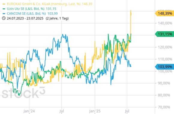 Eurokai (WKN: 570650) bewirtschaftet Teile der Häfen von Hamburg und Bremerhaven. Der Containerumschlag boomt. Dennoch ist Eurokai relativ unbekannt und wird von internationalen Anlegern wenig beachtet. Vielleicht liegt die Free-Cashflow-Rendite deshalb noch bei erfreulichen 18% und das KGV bei einem moderaten Wert von 7. Aus Sicht der Free-Cashflow-Rendite ebenfalls einen Blick wert sind der IT-Servicedienstleister Cancom (WKN: 541910) aus München mit einer 14%-Rendite und einem KGV von 19 sowie der Ulmer Hidden Champion Uzin Utz (WKN: 755150) mit 13%-Rendite, KGV 11. Das Unternehmen stellt Bodenverlegesysteme her. Die genannten Titel sind markteng und eher für erfahrene Anleger geeignet.