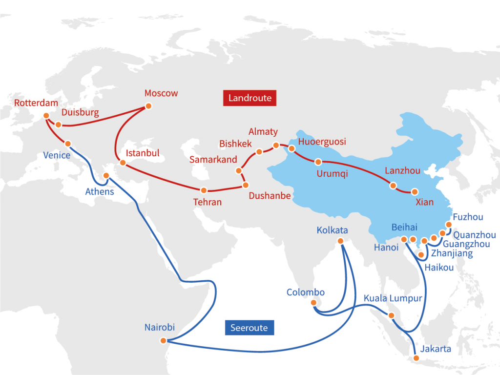 Die Verkürzung und Verbilligung des Warentransports über die One-Belt-one-Road-Landverbindung (= Seidenstraße) bedeutet die Verkürzung der Transportwege und Transportzeiten und schafft damit Kosten- sowie Logistikvorteile gegenüber der im Kern auf Seewege gestützten und davon abhängigen globalen Wirtschaftsstrategie des sogenannten Globalen Westens, also vor allem USA/Kanada und Europa.