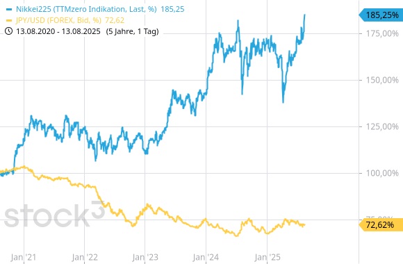 Ein Land, das seine Verschuldung auf die Spitze getrieben hat, ist Japan. Direkt vergleichbar ist die Situation zwar nicht, aber westliche Haushaltspolitiker verweisen gerne mal auf Tokio, wenn es darum geht, wie viel an weiterer Verschuldung noch möglich sei. Dennoch ist das Ganze ein Drahtseilakt für die Bank of Japan. Um Druck vom Wechselkurs zu nehmen, musste sie die Zinsen anheben, was mit jeder weiteren Zinserhöhung die Aufschuldungsdynamik wieder anheizt. Hätte man den Zins im Negativbereich belassen, wäre über die Währungsschwäche vermehrt Inflation importiert worden. Trotz dieser Zwickmühle geht die Sonne noch immer in Japan auf. Die Anleger sind so versessen auf die dortigen Aktien, dass der Leitindex Nikkei 225 zuletzt ein neues Allzeithoch markierte. Zwar gibt es in Japan einige herausragende Unternehmen, uns erinnert diese Bewegung aber an einen Crack-up-Boom („Katastrophenhausse“), bei dem einer der wesentlichen Treiber hinter dem Kursaufschwung der Verfall des Geldwerts ist. Wer sich in Japan engagiert, sollte daher immer auch die Währungsentwicklung im Auge behalten.