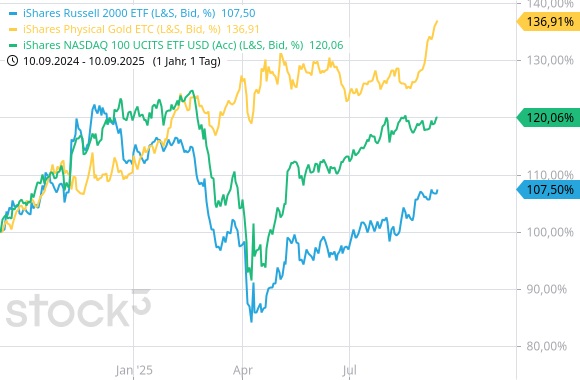 Zu Irritationen führten die US-Arbeitsmarktdaten. Im August wurden nur 22.000 neue Jobs geschaffen, weit unter den erwarteten 150.000. Die Arbeitslosenquote stieg auf 4,3%, der höchste Wert seit 2021. Die Juni-Revision führte zudem mit -13.000 Jobs zum ersten Verlust seit 2020. Alles in allem signalisieren die Zahlen eine so deutliche Abkühlung, dass bereits wieder Rezessionssorgen aufkeimen. Das wäre zwar schlecht für die Wirtschaft, aber dadurch werden Zinssenkungen der Fed nun sehr wahrscheinlich. Der 17.9. ist für eine Lockerung um 25 Basispunkte gesetzt. Inzwischen gelten weitere Reduzierungen während des restlichen Jahres als möglich. Ganze drei gewichtige US-Finanzinstitutionen – Goldman Sachs, Citigroup und Wells Fargo – gehen inzwischen von drei Senkungen in den verbliebenen Fed-Sitzungen des Jahres (September, Oktober, Dezember) um insgesamt 75 Basispunkte aus. Lediglich eine zu hartnäckige Inflation könnte da noch einen Strich durch die Rechnung machen. Nicht einmal das Zoll-Argument wollen die Zinsoptimisten gelten lassen. In rund einem halben Jahr bewegen wir uns da nämlich in die Basiseffekte hinein.