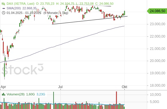Über Wochen hing der DAX am sprichwörtlichen „seidenen Faden“. Der deutsche Leitindex quälte sich an seiner Unterstützungslinie entlang und verletzte diese mehrfach. Die gute Nachricht: das zunehmend kraftlose Chartbild wurde nicht für den großen Abverkauf genutzt. Dennoch gelang auch der große Befreiungsschlag nach oben bislang nicht. Es ist eine klassische Pattsituation. Vor dem Hintergrund der Saison – der September gilt traditionell als einer der schwierigsten Börsenmonate – haben sich die Bullen aber gar nicht schlecht geschlagen. Nicht einmal die sich häufenden Horrormeldungen aus der deutschen Wirtschaft konnten die DAX-Anleger ernsthaft verunsichern. Zu Beginn des neuen Monats gibt es sogar eine kleine Erleichterungsrally. War das Chartbild bis vor einer Woche noch leicht negativ, haben sich die Vorzeichen nun umgekehrt. Das ist noch keine Richtungsentscheidung und noch gar kein Anlass zur Euphorie, aber den Bären läuft langsam die saisonale Uhr ab, falls sie noch eine Attacke auf den Markt probieren wollen. Zwar ist der Oktober ebenfalls für ruppige Ausschläge bekannt, aber spätestens mit dem November gerät die Jahresendrally als ernstzunehmende saisonale Unterstützung in den Fokus. Zudem könnte sich auch der US-Shutdown schneller auflösen als in den Kommentaren allgemein befürchtet. Zur Erinnerung: Historisch dauerten die US-Shutdown im Durchschnitt ganze acht Tage.