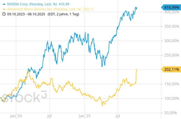 Advanced Micro Devices (AMD, WKN: 863186) hat durch ein mehrjähriges Liefer‑ und Technologieabkommen mit OpenAI den wohl markantesten Kursimpuls der Woche gesetzt: Die Aktie des Chip-Giganten sprang zeitweise über 30% nach oben. Das Vertragspaket umfasst mehrere Generationen der AMD Instinct‑Beschleuniger und eine schrittweise Skalierung auf Infrastruktur im Multi‑Gigawatt‑Maßstab – ein direkter Angriff auf NVIDIAs (WKN: 918422) Quasi‑Monopol. Für Anleger entscheidend sind die Sekundäreffekte: Zulieferer mit Engpass‑Charakter – allen voran ASML (WKN: A1J4U4) – bekamen Rückenwind, während Rivalen wie Intel (WKN: 855681) und TSMC (WKN: 909800) im Erwartungsmanagement erst noch punkten müssen. Die Kapitalkosten für KI‑Rechenzentren bleiben zwar hoch, doch Sichtbarkeit und Planbarkeit steigen; genau das reduziert die Bewertungslücke für Unternehmen ohne „NVIDIA‑Exposure“. AMD bleibt das Scharnier zwischen Hype und Hardware.