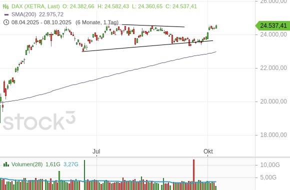 Als wir in der Vorwoche über eine leichte Verbesserung des Chartbilds beim DAX sprachen, war dies noch ein sehr zartes Pflänzchen. Unmittelbar danach kam es am vergangenen Donnerstag zu einem Aufwärts-Gap über die Marke von 24.000 Punkten. Seither konsolidiert der Markt auf hohem Niveau, um nicht zu sagen knapp unter seinem Allzeithoch. Am heutigen Mittwoch kommt erneut Bewegung in den Index. Die Chancen stehen also gut, dass in Kürze ein Angriff auf die bisherigen Rekorde erfolgt, immer vorausgesetzt, es kommt in der Zwischenzeit nicht zu Störfeuer. Verglichen mit den führenden US-Indizes hat der DAX über die letzten Wochen ohnehin einiges an Nachholbedarf aufgebaut. Nicht zuletzt aufgrund der aktuellen Unsicherheiten in den USA könnte der DAX daher wiederentdeckt werden.