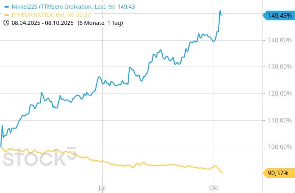Mit Sanae Takaichi gönnt sich Japan voraussichtlich die erste weibliche Premierministerin, und das auch noch mit gesteigertem Coolness-Faktor. Die frisch gewählte Vorsitzende der regierenden LDP fuhr gerne Motorrad und war Drummerin in einer Heavy-Metal-Band. Metall ist ein gutes Stichwort, denn ihr wurde schnell das Etikett der „Eisernen Lady“ angeheftet. Sie ist strikt gegen Masseneinwanderung, gilt als konservativ, kompromisslos und fleißig – eine japanische Thatcher, wenn man so will. Fiskalisch dürfte sie allerdings eine Taube sein, was der Yen unmittelbar mit Kursabschlägen quittierte. Die Yen-Schwäche deutete sich jedoch schon im Vorfeld an. Für Aktien scheint die Personalie dagegen ein Glücksfall zu sein. Insbesondere exportorientierte Titel trieben den NIKKEI 225 nach oben.