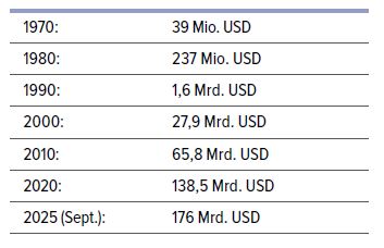 Per September 2025 verfügt Berkshire über liquide Mittel und kurzfristige Anlagen von 382 Mrd. USD, die jährlich über 14 Mrd. USD Zinsen generieren. Der „Versicherungs-Float“ – Prämieneinnahmen, die Berkshire lange vor den Schadenszahlungen zufließen – entwickelte sich über Jahrzehnte beeindruckend.