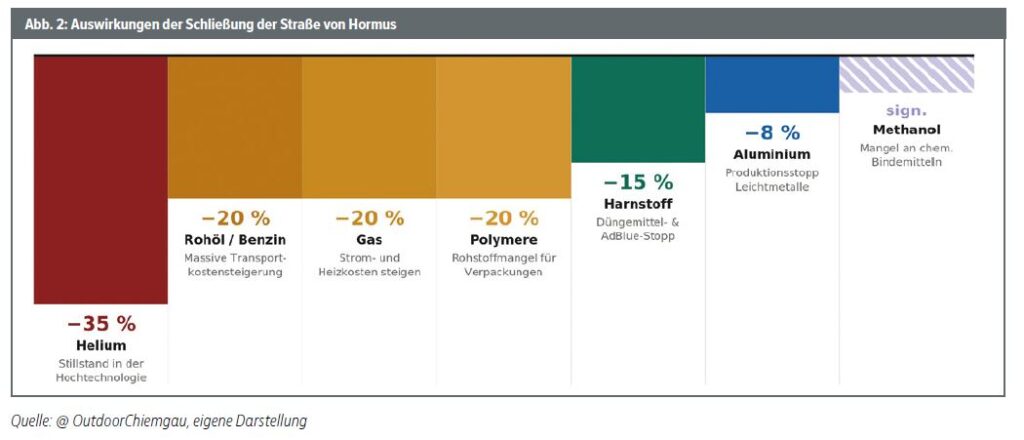 Spiegelsperger: Genau. Im nächsten Winter wird uns das Thema wieder auf die Füße fallen. Aber eigentlich ist da noch viel, viel mehr, wenn es um die Straße von Hormus geht. Ich sage jetzt nur mal Harnstoff, Urea, Düngemittel. Es fehlt in vielen Ländern momentan an Düngemitteln, weil allein der Kataranteil bei 15% am Welthandel lag. Insgesamt reden wir von knapp 30% aus der Region. Wir werden Probleme beim AdBlue für Dieselkraftstoffe bekommen, bei Kosmetikcremes, bei Fleisch, Getreide und Obst, weil dort Dünger gebraucht wird. In Deutschland haben wir den Vorteil, dass wir ein halbwegs wohlhabendes Land sind. Wir haben dann nur mit höheren Preisen zu kämpfen, aber in anderen Ländern ist der Dünger komplett aus. Den hätten sie jetzt zum Ausstreuen gebraucht. Es könnte durchaus zu Hungersnöten kommen. Aber es gibt noch viel mehr, z.B. Polymere, Plastik, Helium, Aluminium, Methanol; es sind so viele Dinge. Das Öl merkt man sofort an der Tankstelle, die anderen Sachen im Supermarkt. Manche Regale sind etwas leerer, andere Sachen sind teurer geworden. Wenn die Grundstoffe fehlen, wird alles knapper und teurer oder wird teilweise gar nicht mehr verfügbar sein. Auch in der Chipproduktion bekommen wir ein Problem. Computer mit hohem RAM-Speicher haben mittlerweile drei Monate Lieferzeit. Sony hat bei manchen SD-Karten Lieferprobleme. Die Grundstoffe fehlen. Helium aus Katar muss durch die Straße von Hormus, und das fehlt jetzt komplett in der Herstellung von High-End-Chips.