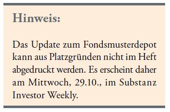 Im CONCEPT Aurelia Global (WKN: A0Q8A0; +88,8% in drei Jahren und damit deutlich mehr als die Wettbewerber) setzt Thomas Bartling auf einen Mix aus Edelmetallen (aktuell: 20,7%) zum Werterhalt und hauptsächlich Tech-Titeln (derzeitige Aktienquote: 70,8%), die für Wachstum und Innovation stehen. Die Cashquote (aktuell: 8,6%) und Aktienfutures helfen bei der Steuerung des Risikos. Deutlichen Rückenwind gab es u.a. durch den im Portfolio hochgewichteten Tech-Titel Oracle. Im September meldete der Konzern einen stark gestiegenen Auftragsbestand, der die Aktie über 30% nach oben katapultierte.