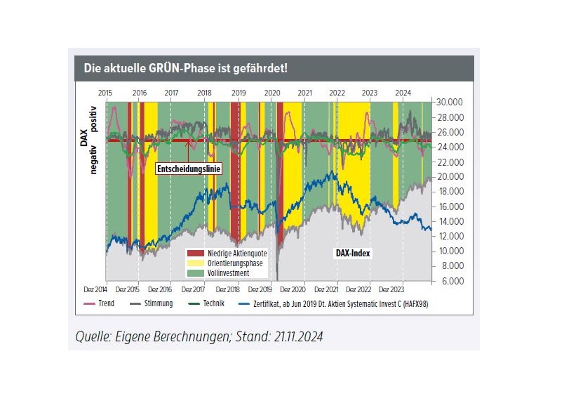 Während die Wahl von Donald Trump zum nächsten US-Präsidenten sich sehr positiv auf die mittelfristigen Konjunktur- und Aktienmarkterwartungen auswirkte, ist Gleiches vom Aus der Ampelregierung nicht zu berichten.