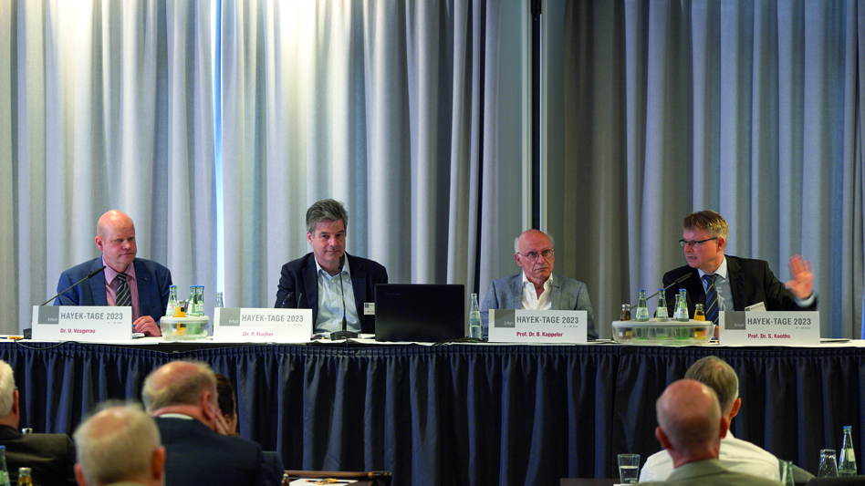 Lebhaft und kontrovers geführt wurde im Rahmen der Erfurter Hayek-Tage 2023 am 9./10.6 .die Podiumsdiskussion „‚Ökonomische Souveränität‘ – Braucht es Schutz vor zu viel Freihandel“.