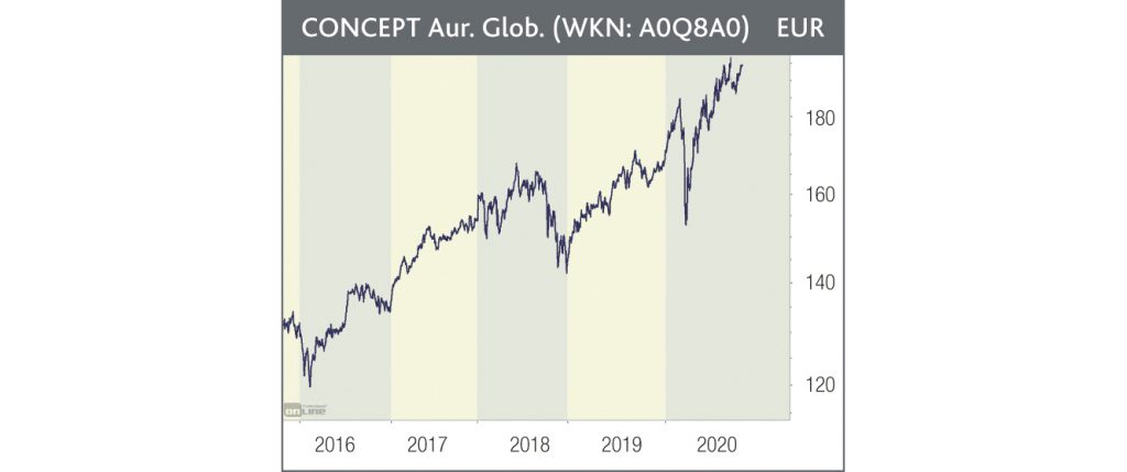Bartling: Ich weiß um die Dynamik meiner im Concept Aurelia Global investierten Titel. Da der Fonds vermögensverwaltend und flexibel angetreten ist, möchten wir für unsere Anleger größere Abschwünge verhindern. Die Netto-Aktienquote, aktuell: 63%, atmet auch unter Einsatz von Futures zwischen 0% und 100%. Die Cashquote kann aus taktischen Gründen temporär schon mal 25% betragen. Dazu können wir immer auf den eingangs erläuterten Naturhedge vertrauen. Im zwölfjährigen Lebenszyklus des Fonds liegt der maximale Drawdown bei unter 20%.